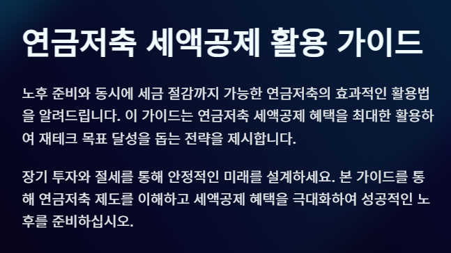 세액공제란 납세자의 과세 소득에서 일정 금액을 공제함으로써 세금을 절감할 수 있도록 설계된 제도입니다. 이를 통해 납세자는 연간 세금 부담을 줄이고, 장기적으로 재정적 여유를 확보할 수 있습니다. 연금저축은 소득세법에 따라 공제를 받을 수 있는 항목 중 하나로, 이를 잘 활용하면 연말정산 시 소득세뿐만 아니라 지방세 절감에도 기여할 수 있습니다.